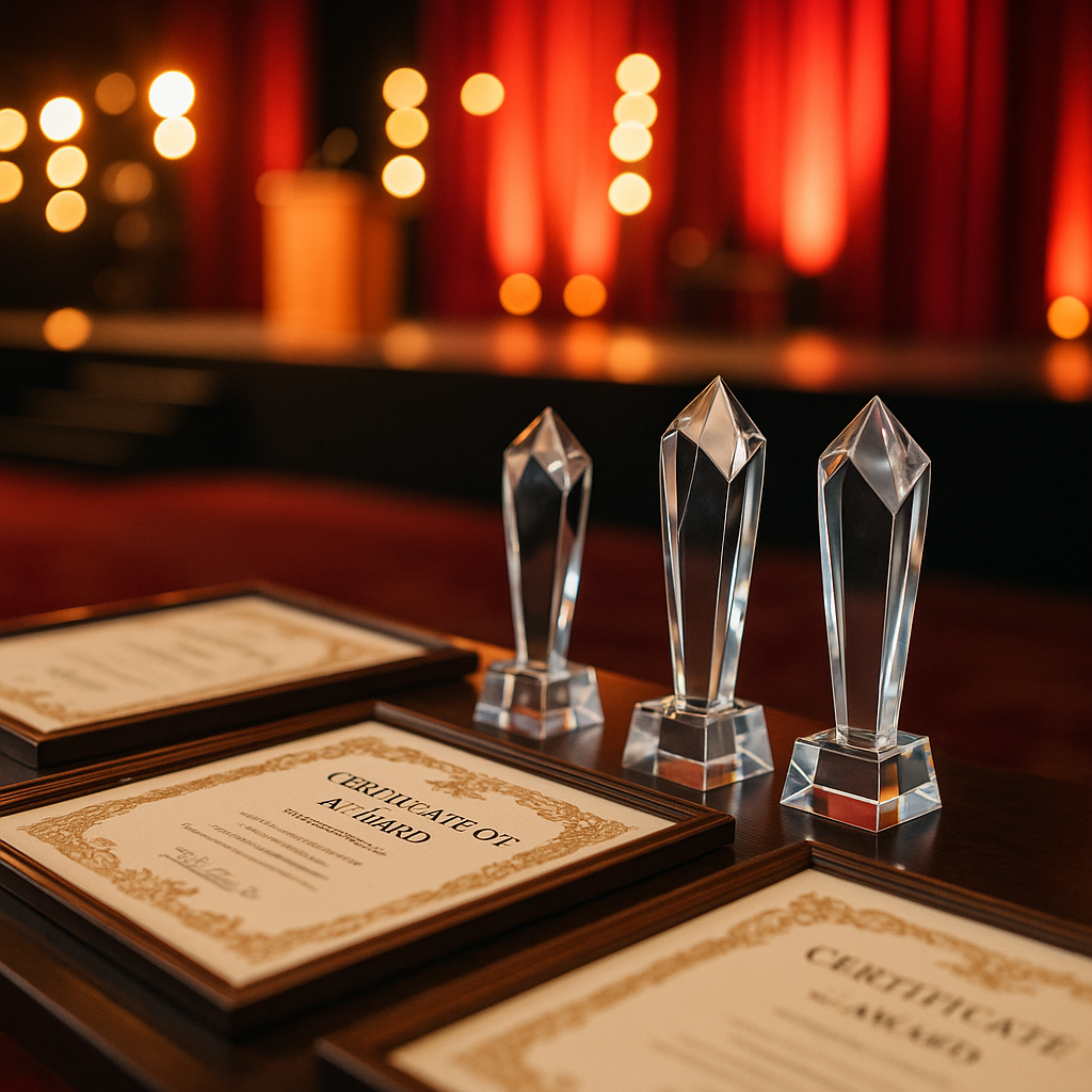 • 表彰物(名入れクリスタル・賞状)の制作と、イベント後の個別発送対応